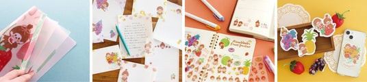 現在はオリジナルイラストの製品作成のほか、キャラクター商品とのコラボレーションも増えており、文具に限らずますます広がりをみせています。