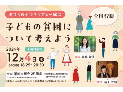 認定NPO法人おてらおやつクラブ(奈良県磯城郡田原本町八尾40、代表:松島靖朗)は、活動10年の節目を迎え、2024年12月4日(土)18時25分より築地本願寺で「子どもの貧困を考える」会を開催します。