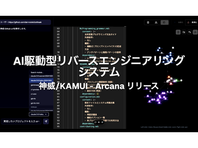 株式会社KandaQuantum(本社:東京都千代田区麹町6-6-2 番町麹町、代表:元木大介)は、大規模ソフトウェアシステムのリバースエンジニアリングを革新する次世代AIシステム「神威/KAMUI」(以下、神威/KAMUI)の提供を開始いたしました。本システムは、複雑化するソフトウェアシステムの構造を深層的に理解し、視覚化する画期的な技術を実現します。