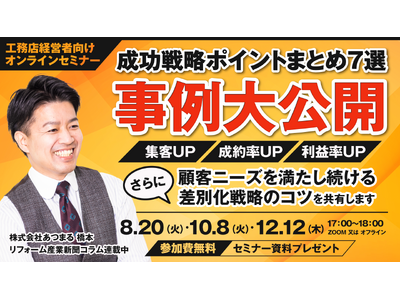 工務店経営者様向けのオンラインセミナーを開催いたします。本セミナーは、オンライン(Zoom)および東京オフィスでの対面参加のいずれかをご選択いただけます。