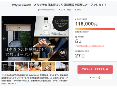 プロジェクト名:#MySakeWorld オリジナル日本酒づくり体験施設を京都にオープンします!