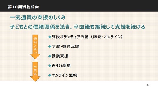 貧困や虐待に苦しみ全国の児童養護施設で暮らす子ども・卒園後の子どもを支援するボランティア団体「みらいこども財団」は、第10期の年次活動報告書を発表しました。
