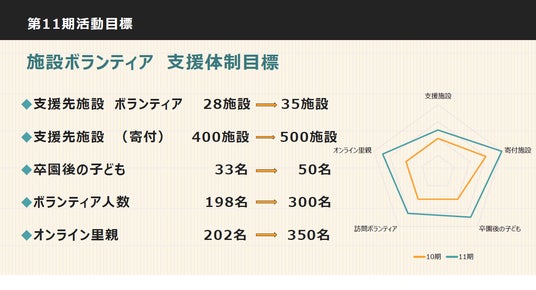 第11期活動目標:訪問ボランティア児童養護施設数を1.3倍に