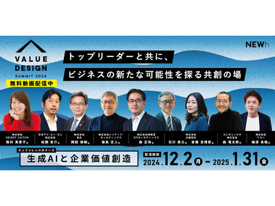 株式会社NEWh(本社:東京都千代田区、代表取締役社長:神谷 憲司)は、2024年11月29日 9:00~20:00で開催した、企業のリーダー人材向けオンラインカンファレンス「VALUE DESIGN SUMMIT 2024」のアーカイブ動画を公開しました。申込者限定で2025年1月31日(金)までの約2ヶ月間ご視聴いただけます。