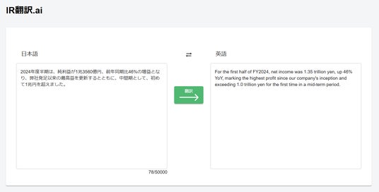 - 一度に最大5万文字の翻訳が可能(決算説明会:1.5万~2万文字程度)