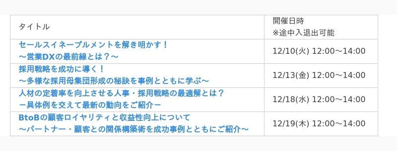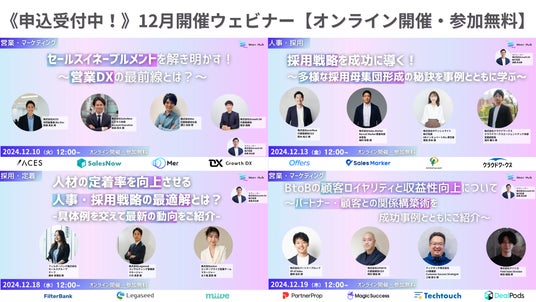 【オンライン開催・参加無料】営業・マーケティング・人事・採用・定着など複数テーマでウェビナーを開催