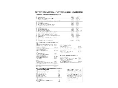 パパやママや祖父母が今年のクリスマスプレゼントとして、お子さんやお孫さんに贈りたいおもちゃを投票して決める「お子さんやお孫さんに贈りたいクリスマスおもちゃ2024」の結果が12月3日に発表された。