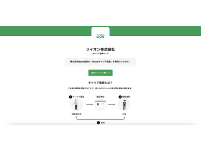 ライオンのキャリア採用ページに設置された「キャリア登録」ページ