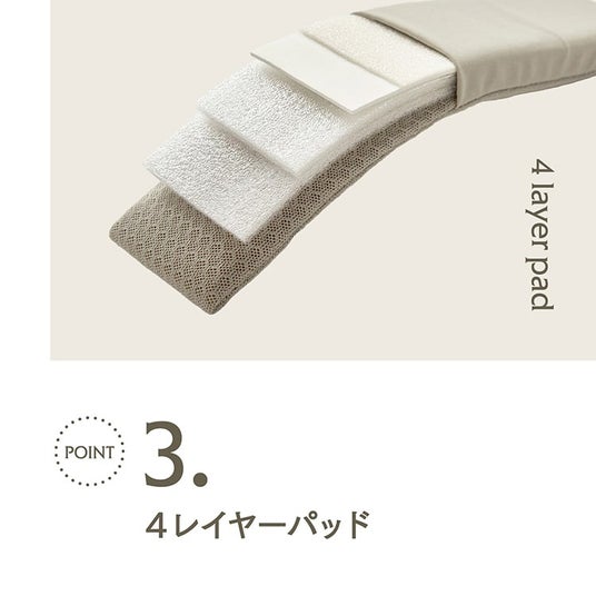 オリジナルの肩パッドには、厚みと構造の異なる4種の中材を使用。体圧分散に優れ、身体への負担を軽減します