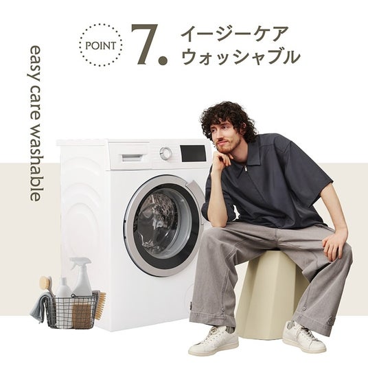 洗濯機の手洗いコースで丸洗いOK。速乾性のある素材ですぐに乾くので、外出後や汚れが気になったら気軽に洗って清潔感をキープできます。
