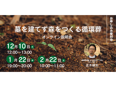体調や遠方などの理由で現地見学が難しいお客様にも、循環葬(R)RETURN TO NATUREを知っていただきたい。そんな想いから、オンライン説明会を開催します。オンライン説明会では、循環葬(R)︎のこと、森のこと、私たちの想いについてお話しさせていただき、皆様からのご質問にもお応えします。