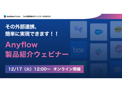 Anyflow株式会社(本社:東京都千代田区、代表取締役CEO:坂本 蓮、以下Anyflow)は、SaaS事業者向けのAPI連携プラットフォーム「Anyflow Embed」の製品紹介ウェビナーを12月17日(火)に実施することをお知らせします。