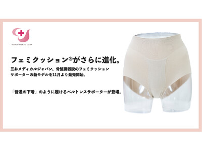がんサバイバー、骨盤臓器脱患者など深刻な医療課題を抱える方たちの症状緩和、予防につながる医療機器の企画・開発・製造を手掛ける株式会社三井メディカルジャパン(本社:東京都中央区、代表取締役:三井桂子)は2024年12月1日、膣から臓器が出てくる罹患である、骨盤臓器脱を防ぐためのフェミクッションサポーターの新モデル(ベルトレス版)を発売開始することをお知らせいたします。