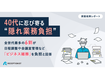 株式会社RECEPTIONIST(本社:東京都目黒区、代表:橋本(大宮)真里子 以下、「当社」)は、全国の会社員400名に、日程調整などの「ビジネス雑務」に関するアンケートを実施しました。その結果、これらの業務に多くの時間を費やされており、特にミドルマネジメント世代である40代が全世代の中で最も大きな負担感を抱えていることが明らかになりました。