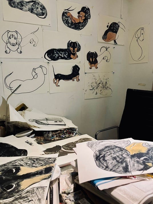 「Mardi Mercredi(マルディメクルディ)」とのコラボレーションでは、ダックスフントのドローイングシリーズを手掛け、ダックスフント特有の表情や仕草に焦点を当て、シンプルでありながらユーモアを感じさせる作風で作品を仕上げました。