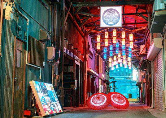 「光る和傘(有料レンタル)」や「光る提灯(販売)」を片手に、夜の岡崎をお楽しみください。