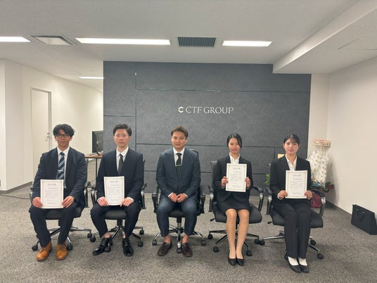 CTF GROUPでは、11月1日(金)に4名の2025年新卒内定者を迎え、新しく移転したオフィスにて対面による内定式を実施いたしました。内定式では役員からの歓迎の言葉が贈られ、内定者一人ひとりに社長より内定証書の授与が行われました。