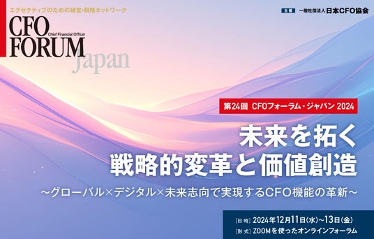 田区、理事長:小口正範、以下日本CFO協会)は、12月11日~12月13日に『未来を拓く戦略的変革と価値創造 ~グローバル × デジタル × 未来志向で実現するCFO機能の革新~』をテーマに、先進的な挑戦を続けているCFOや経営・財務幹部、専門家の方々を迎えたオンラインフォーラムを開催します。
