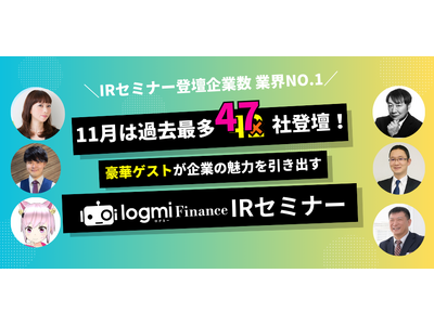 Sansanグループのログミー株式会社(本社:東京都渋谷区、代表取締役社長:石本 卓也)は、運営するIRメディア「ログミーFinance(ファイナンス)」において、主催するIRセミナーの2024年11月の月間登壇企業数が47社に達し、IR支援業界で史上最多※となったことをお知らせします。