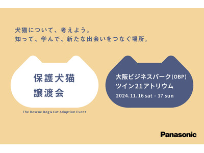 パナソニック株式会社は、多くの保護犬猫たちの新たな家族との出会いの場になっている「パナソニック保護犬猫譲渡会」を、2024年11月16日・17日の2日間にわたり大阪にて開催しました。