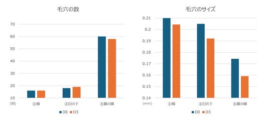 わずか3日間の使用にも関わらず、毛穴の数とサイズについて変化が確認できました。