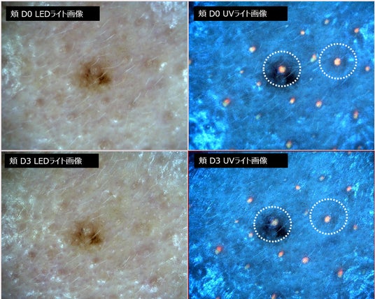 図3 ペプチドコンプレックスを3日間使用した際の頬周辺の画像