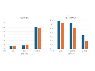 表1 ペプチドミックス原料を3日間使用した際の毛穴の数とサイズ