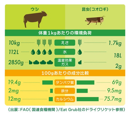 コオロギと畜産(牛)の比較