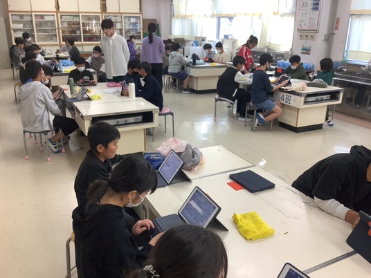6年生のクラスのみんなと開発にかかる授業の様子