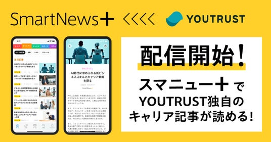 本取り組みでは、「SmartNews+」に新設された専門チャンネル「キャリア+」にて、「ユートラ編集部」に掲載しているキャリア専門記事を厳選して配信。SmartNewsアプリでも、YOUTRUSTの記事コンテンツをお楽しみいただけるようになりました。