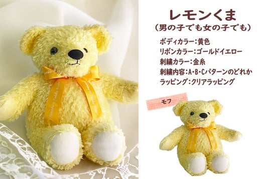 女の子には「ひなくま」、男の子には「かぶとくま」、元気いっぱいの「レモンくま」から選択可能。