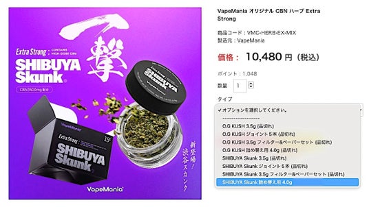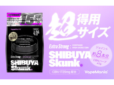 株式会社VMC(本社:東京都台東区)のVapeManiaより、CBNハーブ Extra Strong SHIBUYA Skunkの超得用サイズの4.0gパウチが発売されます。