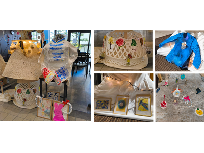 一部のオーナメント制作にあたって、アップサイクルの会員企業であり「廣岡京染工芸」を展開している「株式会MOTHER EARTH」(本社:東京都港区、代表取締役:廣岡 輝、クリエイティブディレクター:水嶋 茂尭)とコラボレーションしました。和紙の原料である楮の木ガラを再生した紙に印刷された障がい者アートに、松本流金彩工芸士である廣岡讀氏が繊細な金彩加工を施しました。金彩技術は、日本では着物や工芸品などを艶やかに彩る技法として独自の発展を遂げており、今回、ヒカリのアトリエ所属アーティストの作品に取り入れることで、華やかながらどこか繊細さを感じる独特のオーナメントが生まれました。
