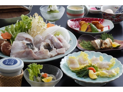 新鮮な魚介料理でおもてなしする京都旅館「ホテル丹後」は、活〆トラフグ会席プランの受付を開始しました(~25年3月中旬まで)