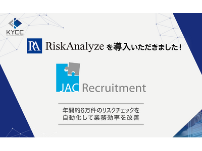 KYCコンサルティング株式会社(本社:東京都千代田区、代表取締役:飛内尚正、以下KYCC)が開発・提供する反社・コンプラチェックツール「RiskAnalyze」(リスクアナライズ)が、スペシャリストや管理職人材に特化した人材紹介事業会社である株式会社ジェイ エイ シー リクルートメント(東京都千代田区、代表取締役会長兼社長: 田崎 ひろみ)に導入されたことをお知らせいたします。