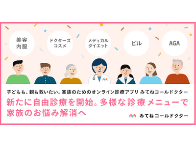 家族のためのオンライン診療アプリ「みてねコールドクター」を提供する株式会社コールドクター(東京都渋谷区、代表取締役社長:合田武広、以下コールドクター)は、新たに自由診療サービスを開始いたします。美容内服薬、ピル、AGAなどの診療科目を増やし、子育て世代を中心に多忙な生活を送る皆様に「家にいながら簡単にアクセスできる医療」を提供し、日常生活の中で健康や様々なお悩みを解消する新たな選択肢を提供します。