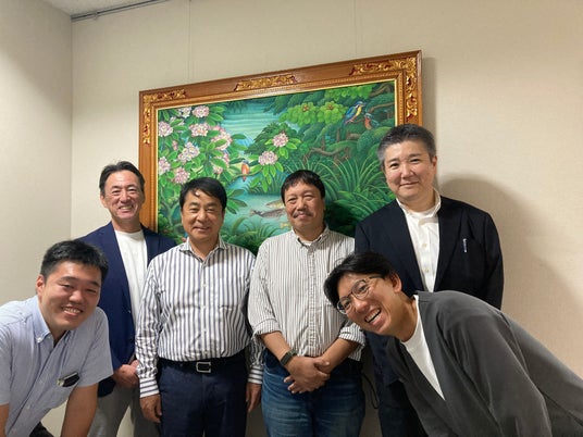 嘉戸隆 美郷町長(左から3番目)へのご挨拶時の様子