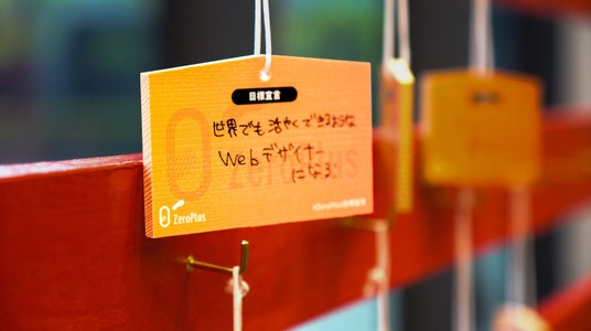 これからの新しいZeroPlusを一緒につくる一歩目として、表面に「目標宣言」裏面に「ZeroPlus とナニスル?」のテーマで絵馬を記入する企画を用意しました。