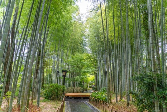 に開けた温泉街は古来から湯治場として親しまれ、京都嵐山を彷彿させる「竹林の小径」、源