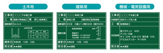 電子小黒板のテンプレート化で工事写真管理に必要な情報を統一