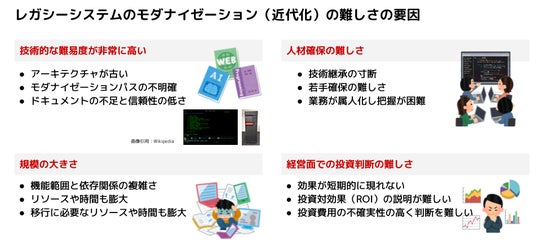 その一方で、これらのシステムを完全に置き換えるには、多大な工数とコストがかかるという現実があります。