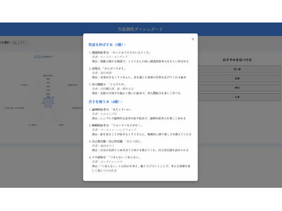 ミライ式で発表してくれた子どもたちの「意見データ」をもとに、AIが子どもたちの可能性をレコメンドしていきます。現在は、おすすめの習い事・読書・教材・仕事などがレコメンドできます。