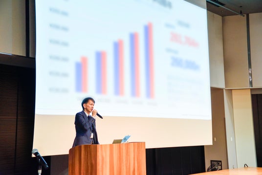 セッション後半では、当社代表取締役 中山 豊より、日本社会の人口減少なども踏まえた歯科採用市場についてのマクロな視点からの分析をはじめ、人材確保が難しい時代における柔軟な経営モデルや新しい採用戦略の必要性などについてお伝えしました。