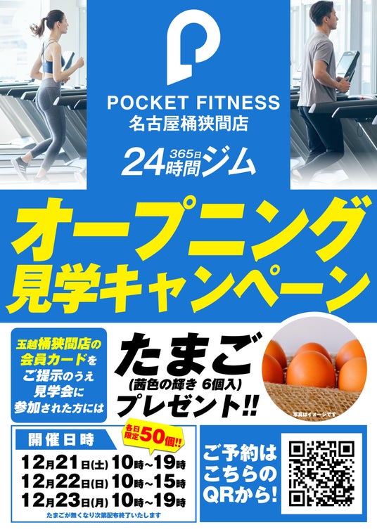パチンコ・パチスロ遊技場の経営や新たなレジャー産業を創造する株式会社玉越(本社:愛知県名古屋市、代表取締役社長:高木 宏動)は、株式会社NATURE FITNESSとフランチャイズ契約を締結し、パチンコ・パチスロ遊技場「玉越桶狭間店(愛知県名古屋市緑区桶狭間神明1662)」の2階に、当社が加盟店として運営する「POCKET FITNESS 名古屋桶狭間店」を2025年1月4日(土)にグランドオープンいたします。そして、オープンに先立ち、2024年12月21日(土)から2024年12月23日(月)にかけて、プレオープンイベントとして、施設見学会を実施いたします。
