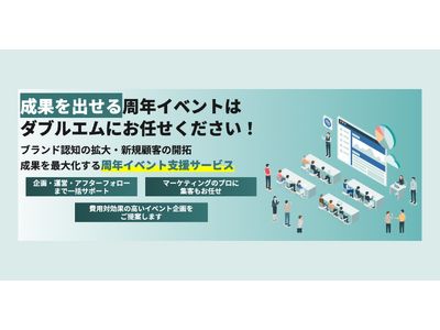 イベントマーケティングサービスを展開する株式会社ダブルエム(本社:愛知県名古屋市千種区、代表取締役:安井 勝、以下「当社」)は、企業のブランド認知拡大、新規顧客獲得、収益向上を実現する「周年イベント企画・運営サービス」を紹介するLP(ランディングページ)を2024年12月20日に公開いたしました。これにより、企画から集客、当日の運営、アフターフォローまでトータルで支援し、成果重視の周年イベントを通じて、ビジネスのさらなる成長を後押ししてまいります。