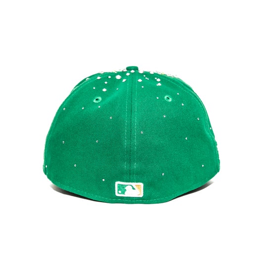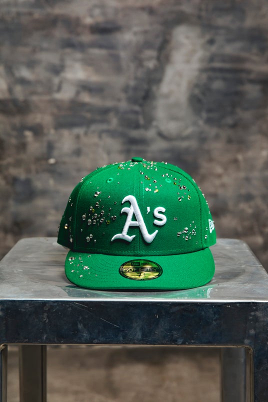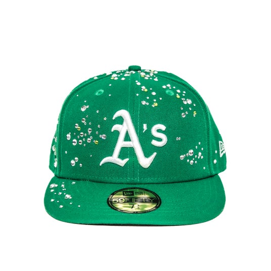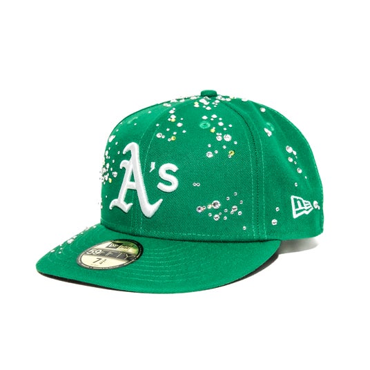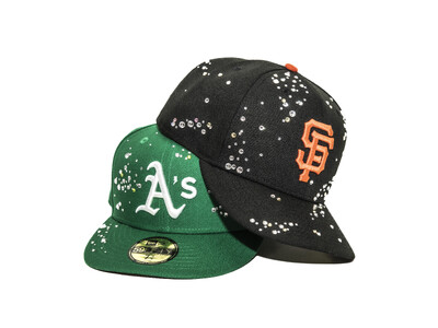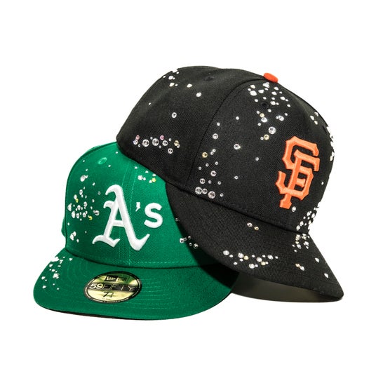 大粒のスワロフスキーをふんだんに使用し、まるで芸術作品のような風格を纏った仕上がりになっています。「Oakland Athletics」と「San Francisco Giants」のベースボールキャップをベースに、Coutureに所属するアーティストが全て手作業で装飾を施しました。