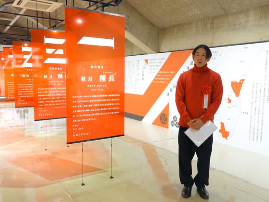 「『歴史と文教の城下町』として資料館は、人を惹きつける場所にしないといけないと考えた。そこで、クリエイティブディレクターとして梶友宏氏を召喚し、郷土史に詳しい石川正樹氏や清水正恵氏の協力も得て、大胆な発想で、大胆な絵巻物の世界をつくることができた。『二ノ丸』に人がもっと集まり、高鍋の物語を伝える場所にしたい。高鍋の未来をここから語りたい」と熱い想いをお話しされていました。