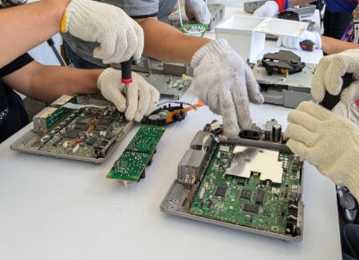 ゲーム機分解レアメタル回収ワークショップ出展者:新井紙材株式会社