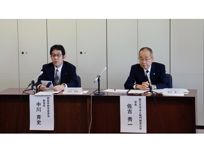 徳島県教育委員会 中川教育長(左)と鳴門教育大学 佐古学長(右)の合同記者発表