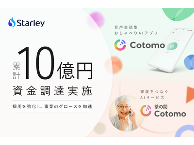 人とAIの新たな関係をデザインするStarley株式会社(読み:スターレー、本社:東京都港区、代表取締役:丸橋 得真、以下「Starley」)は、X&KSK、TBSイノベーション・パートナーズ3号投資事業組合、W fundほかを引受先とした第三者割当増資により、総額約2億円の資金調達を実施しました。本調達は、前回の7億円の調達に続くエクステンションラウンドとして実施され、累計調達額は10億円となりました。